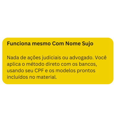 Você terá acesso imediato a todo o conhecimento, estratégias, ferramentas, modelos prontos e um passo a passo validado, que te ensina de forma prática, legal e definitiva como limpar nomes e ainda transformar esse conhecimento em uma fonte de renda diária prestando esse serviço.